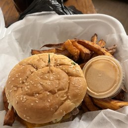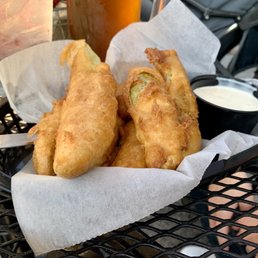 Sidetrack is pet-friendly, which made us happy as we don't have many pet-friendly places in our hometown. We brought our two dogs and were seated outside. They even have a dog-specific menu! Rather than order individual entrees, we split a few appetizers - pretzel bites, fried clams, and Reuben egg rolls. All three were delicious - I especially loved the beer cheese dipping sauce for the pretzel bites. We got a "pup plate" and the dogs split a rice, gravy, and burger lunch. They were really excited and happy to be there. There were yellow jackets swarming all over the patio - it really ruined our experience. I was stung on the hand. The staff did their absolute best to try and fix it - they poured some nectar far away from the tables, and they brought me an ice pack after I was stung, but if you're going to have an outdoor patio full of flowers, you should do more to make sure there aren't hives nearby. Or find a way to seat people inside or away from the wasps, even if we have dogs with us. I would return to Sidetrack, but probably not in late summer when this insect problem is at its peak.